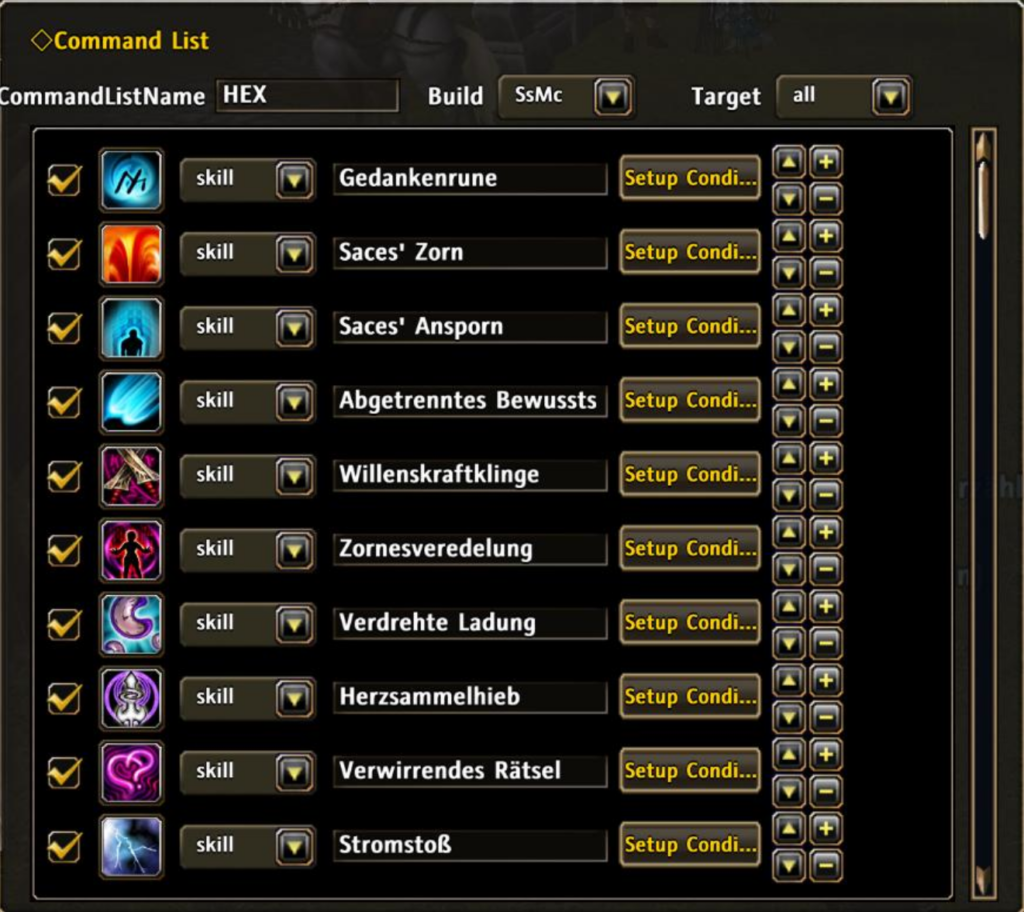 Herzsammelhieb: Bekommt keinen Zustand bei mir. Das soll einfach für Fokus auf CD gehalten werden. Der Unterschied im Schaden ob Schwächender drauf ist oder nicht, ist für mich vernachlässigbar. Ich will hier nur den Fokus von dem Skill.